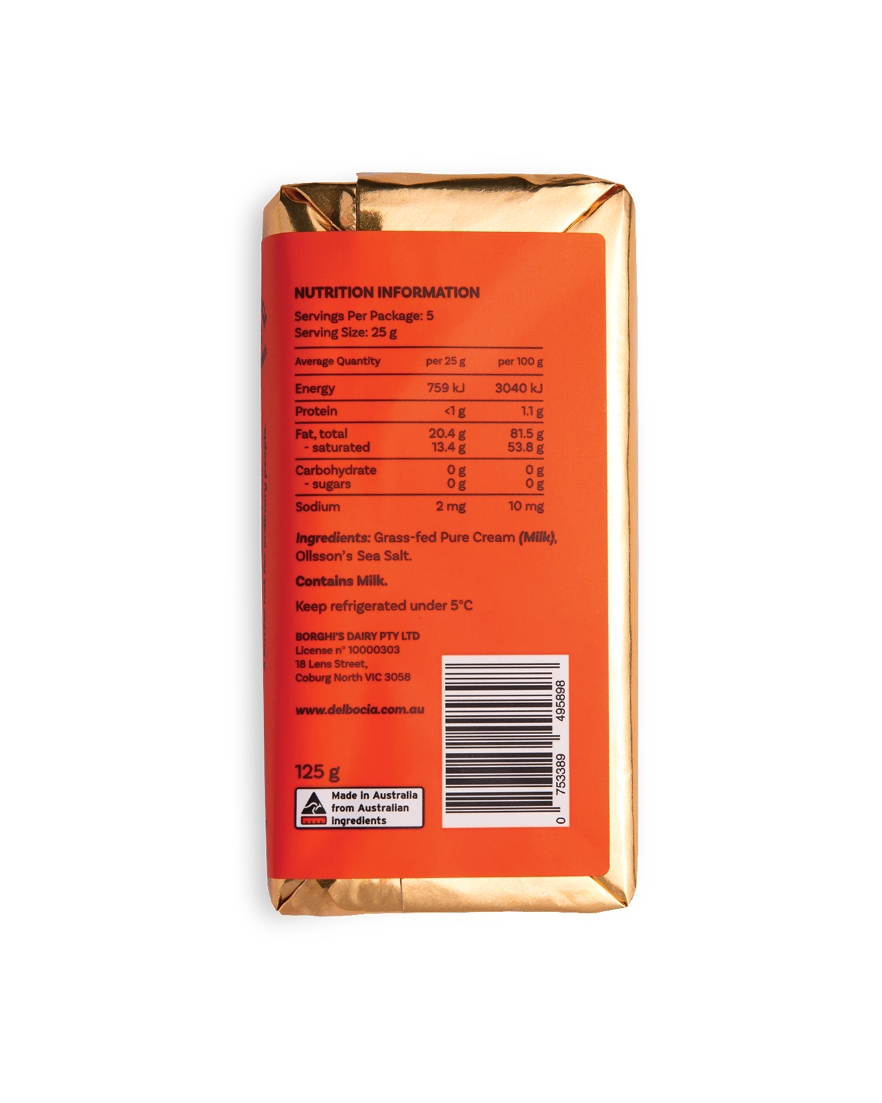 Ingredients: Pure Cream (Milk), Australian Salt.